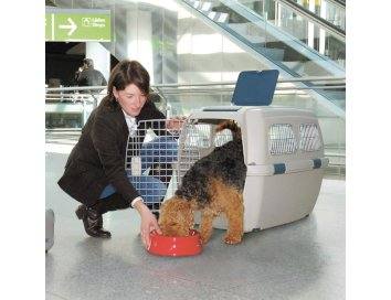 Die Flugbox muss so groß sein, dass Ihr Hund jederzeit in aufrechter Position stehen, sich ohne Probleme drehen und in natürlicher Haltung liegen kann.